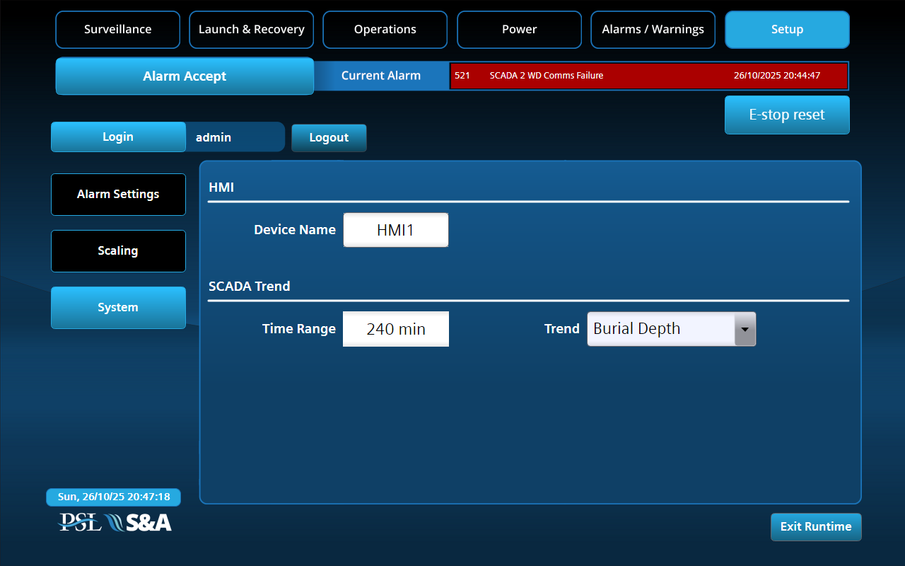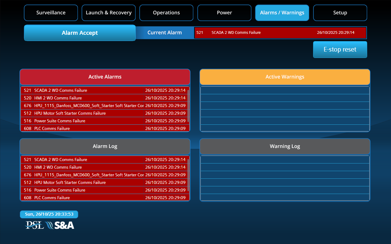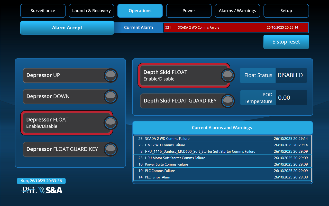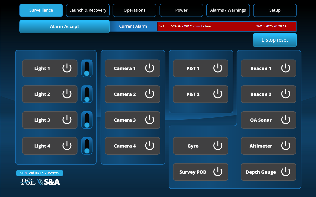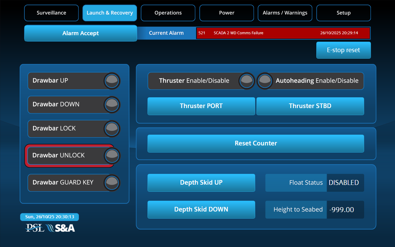 - Operator station: Centre console, twin HMI, dual operator chairs c/w control panels